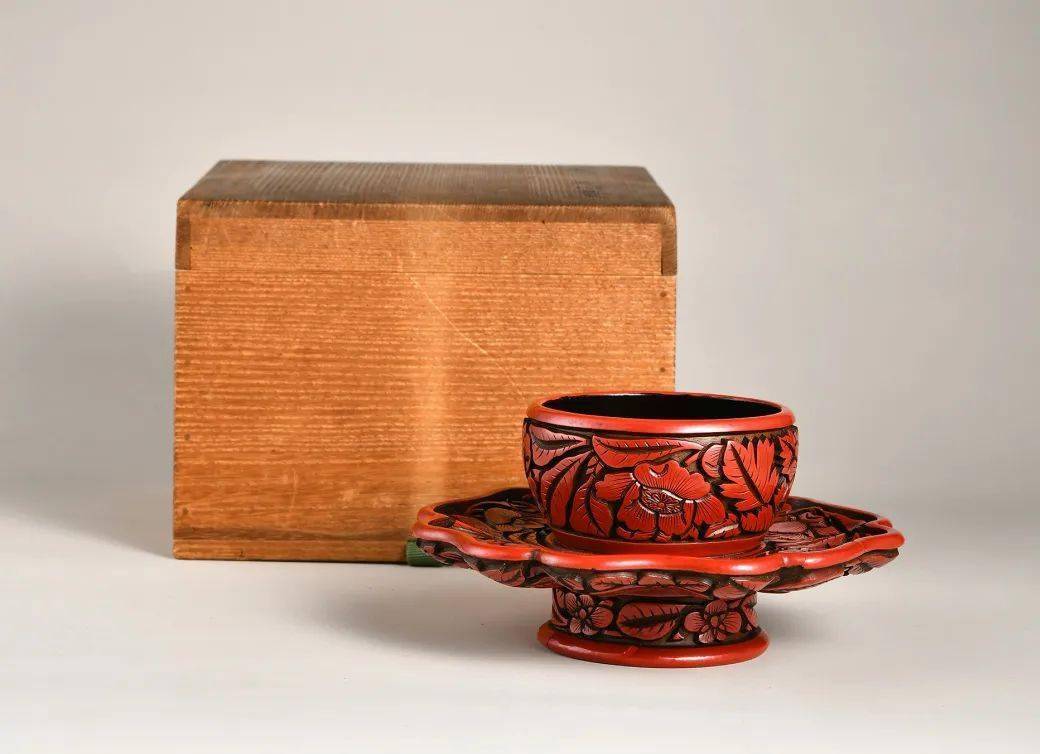 元 牡丹花卉复色雕漆盏托