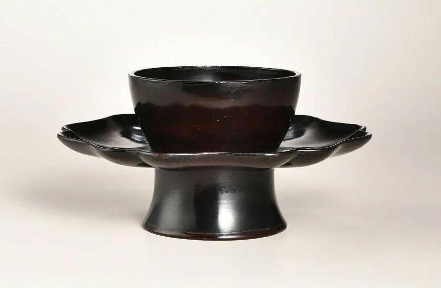 元 黑漆葵口盏托