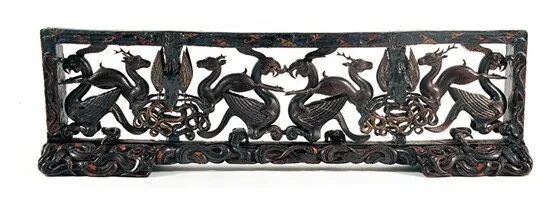 ▲虎座凤鸟漆木架鼓
