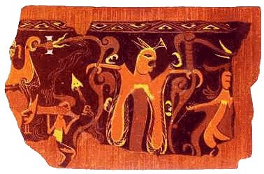 楚国的巫祝文化非常发达,楚人对红黑二色的偏好也表现出了一种原始冲动,红黑二色是生命的象征,表明了楚人对生的向往和对死的规避。从其色彩表现观念来看,是基于一种抽象的生存意识。这与楚之先民祭天祀地的风俗,寻求的是同一个结果。