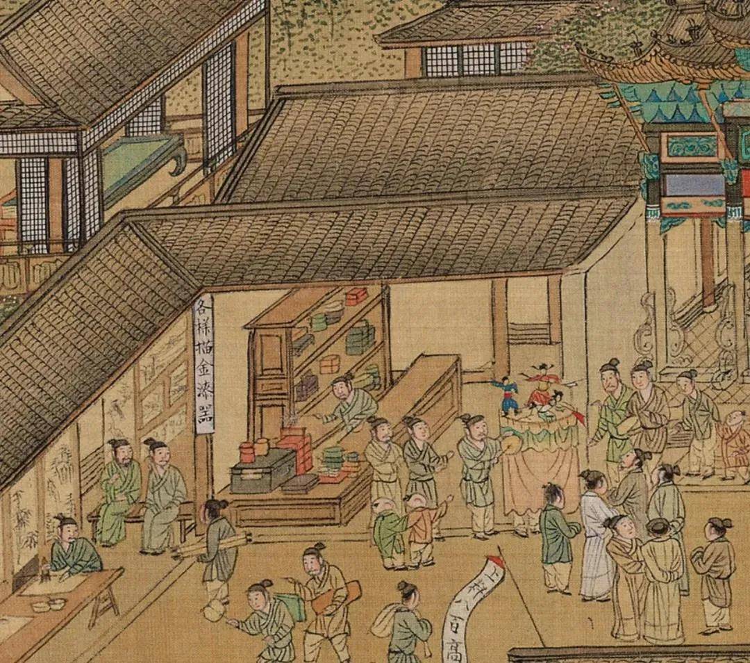 明代,苏州的漆器声名远扬,金漆最有名。清乾隆年间,苏州和北京成为雕漆中心。《姑苏繁华图》中就有六家漆器店,多在阊门及胥门万年桥一带。乾隆四年,钦点苏州雕竹名匠封岐造漆仿制明代雕漆大获成功,此后便钦定苏州织造府督办制作宫廷漆器。