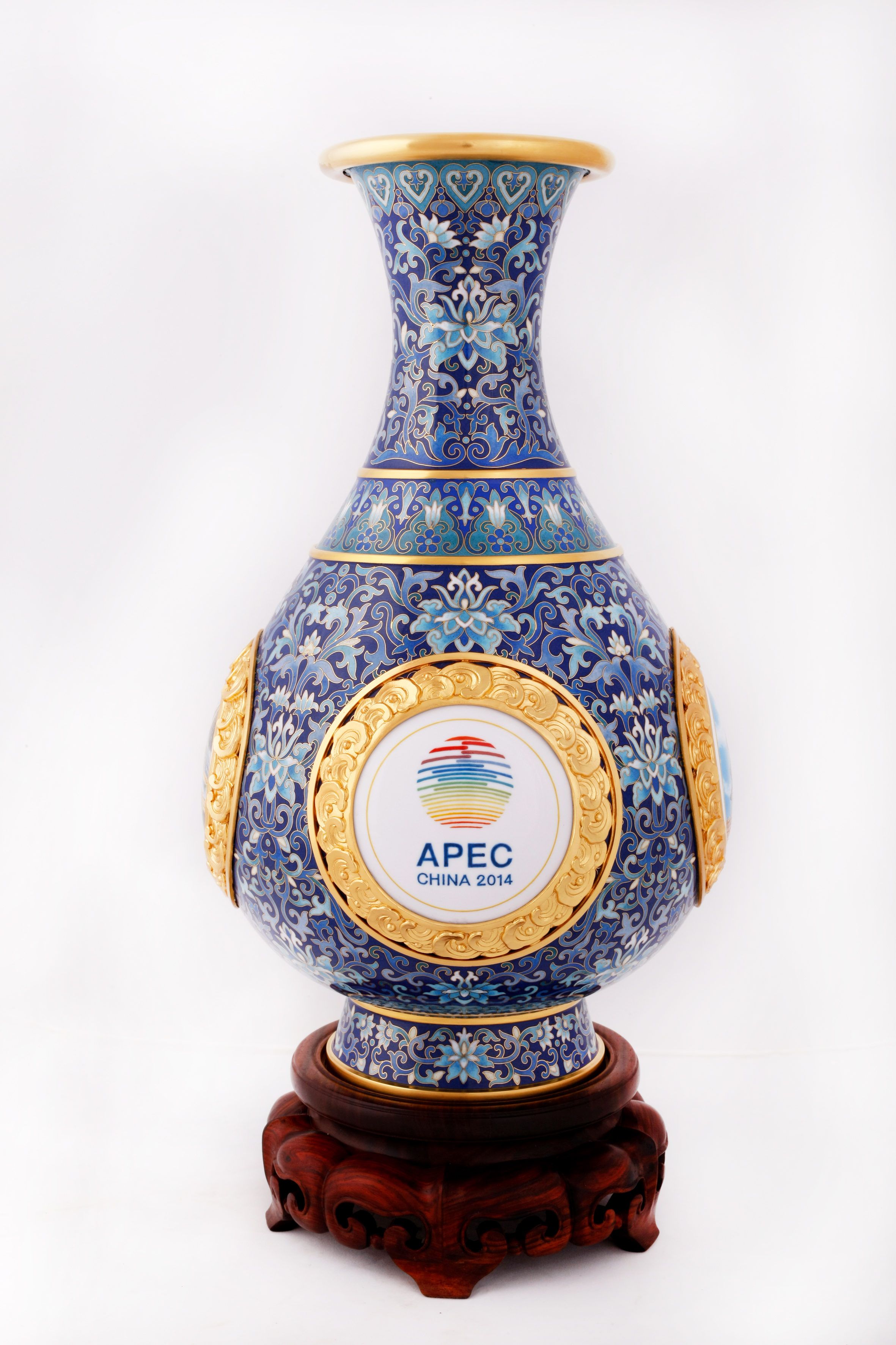 APEC会议领导人赠礼 《四海升平》景泰蓝赏瓶 2014年