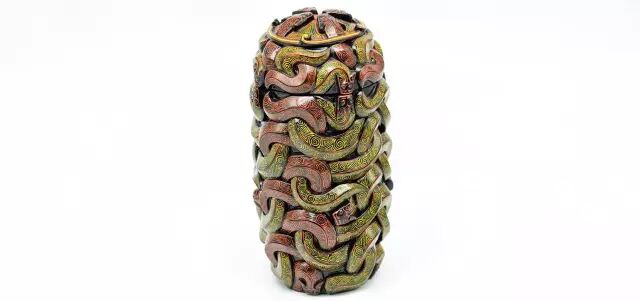这件作品来自于随州曾楚文化旅游漆器公司首席技师祝成超,近十年里,他制作出了几十件漆器作品,运用夹纻胎工艺等古代传统技法,加上现代绘画艺术手法,重现曾随文化,其形、神、质已和曾侯乙墓国宝文物不相上下,不仅在大赛中得到极高的评价,还曾赠送给国民党荣誉主席连战、美国前总统卡特、香港前特首曾荫权等名人,无愧最高工艺水平的湖北伴手礼。