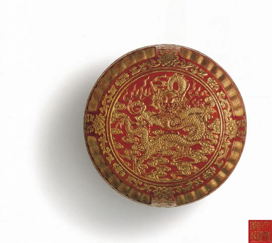 明晚期,朱漆柳条工盒子甚为普及,却多不属御用之品,因此鲜有饰五爪龙纹者。本御制仿朱漆柳条工盖盒,却巧饰祥龙,殊为难得。