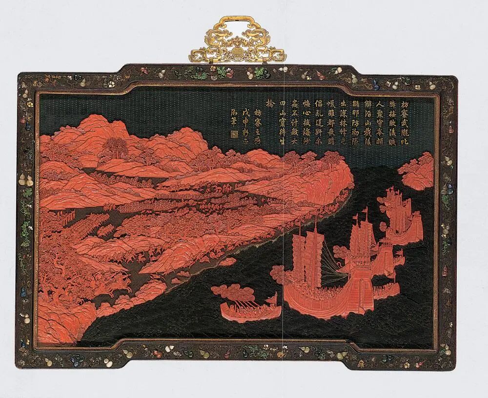 乾隆 御题剔红百宝嵌枋寮战图挂屏