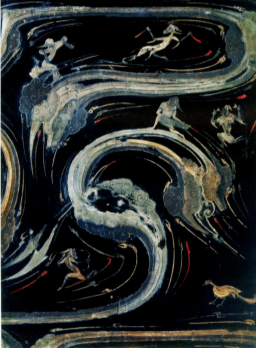 汉 马王堆汉墓黑地彩绘漆棺云纹漆画