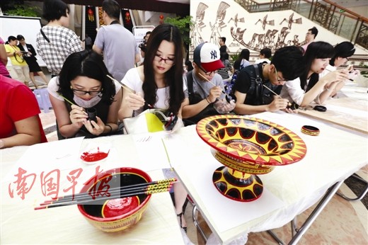 广西新闻网-南国早报南宁讯(记者李丽)5月18日,是第39个国际博物馆日。为了契合今年国际博物馆日“博物馆致力于一个可持续发展的社会”这一主题,广西民族博物馆在5月18日至6月13日(文化遗产日)之间举办第二届“广西民族文化节”,此次文化节分别由“彝族文化周”和“壮族文化周”组成。而5月18日当天上午举办的“彝风火韵”——彝族漆器髹饰技艺体验活动,揭开了整个文化节的序幕。
