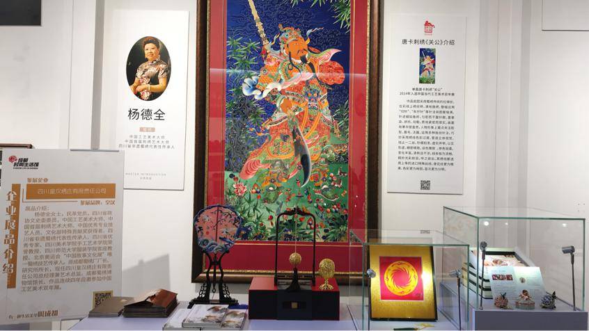 杨德全,中国工艺美术大师、中国首届刺绣艺术大师、中国优秀专业技艺人员、四川皇汉绣庄有限责任公司和“皇汉刺绣”“皇汉绣庄”品牌创始人。她潜心六年著作绣谱“觅针”丛书,其蜀绣“关公”作品入选2014年中國工艺美术双年展國愽展览,体现了蜀绣衣锦纹针法50余种的活态保护与传承,图文并茂,色彩缤纷。这次展示了大师馆藏作品“关公”图,以及文创“飘飖蝶”絲巾系列产品等。