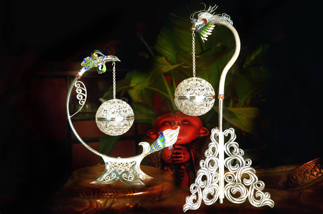 如今,成都银花丝工艺品有戒指、手镯、头花、项坠、盘、屏、盒、花熏、花瓶等400余个品种,作为佩戴品、装饰品深受人们喜爱。
