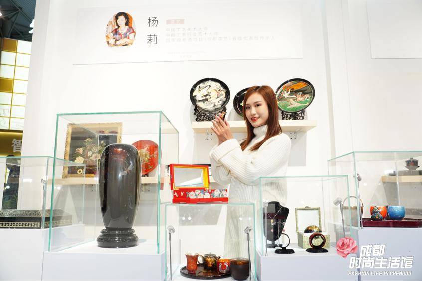 杨莉,中国工艺美术大师、中国工美行业艺术大师、中国非物质文化遗产“成都漆艺”传承人。成都杨莉尔倩漆艺文化传播有限公司秉承传承成都传统漆艺、创新适用精品的宗旨,让艺术回归生活,生活享有艺术。此次展会既带来了收藏级漆器精品,也带来了时尚艺术的生活适用品,深受观众的喜爱和好评!