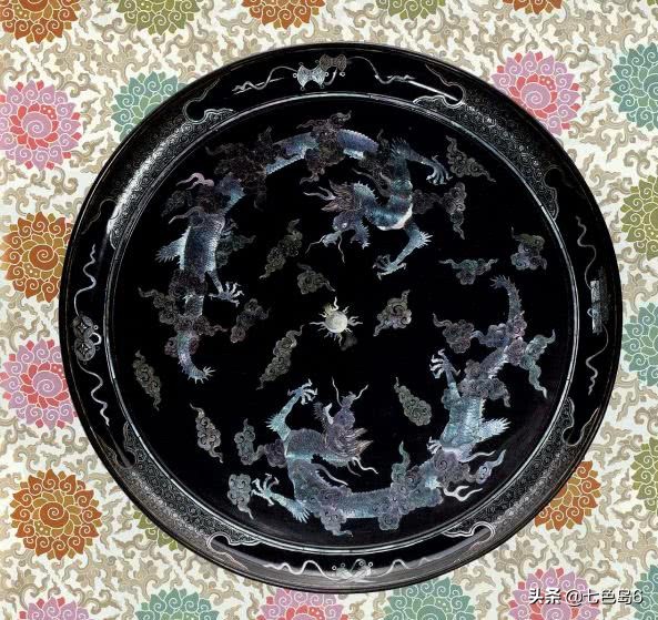 黑漆嵌螺钿云龙纹圆盘