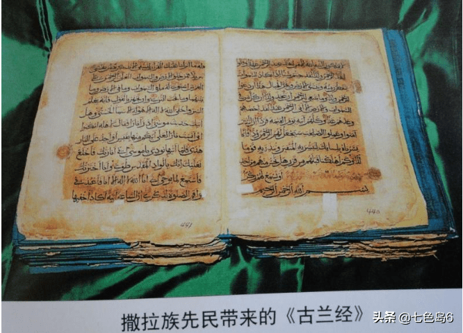 世界现存最古老的三本手抄本《古兰经》之一的青海撒拉族手抄本《古兰经》。该部《古兰经》共三十卷867页,分上、下两函,重达12.79公斤,函封为犀牛皮,并印有精美图案,书写笔锋流畅,字体近似阿拉伯书法中的穆哈盖格体,抄写年代约为11世纪之后。收藏于青海省博物馆。