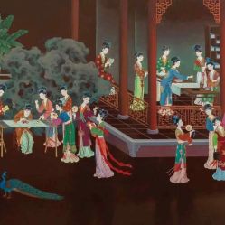作为平遥推光漆艺新生代的代表,薛晓东积极倡导和推行传统工艺与现代审美观念相结合的设计理念。在他看来:“传统是根,创作是魂。一幅作品不是技艺越多就越精美,不能光凭多种技艺的拼接进行创作,一定要融入自己的思想,还要符合现代人的审美。”他在创作中熟练运用擦色、描金、堆漆工艺,大胆融入当代人的审美理念,画面意境深远,层次鲜明,装饰性强,极具视觉冲击力。