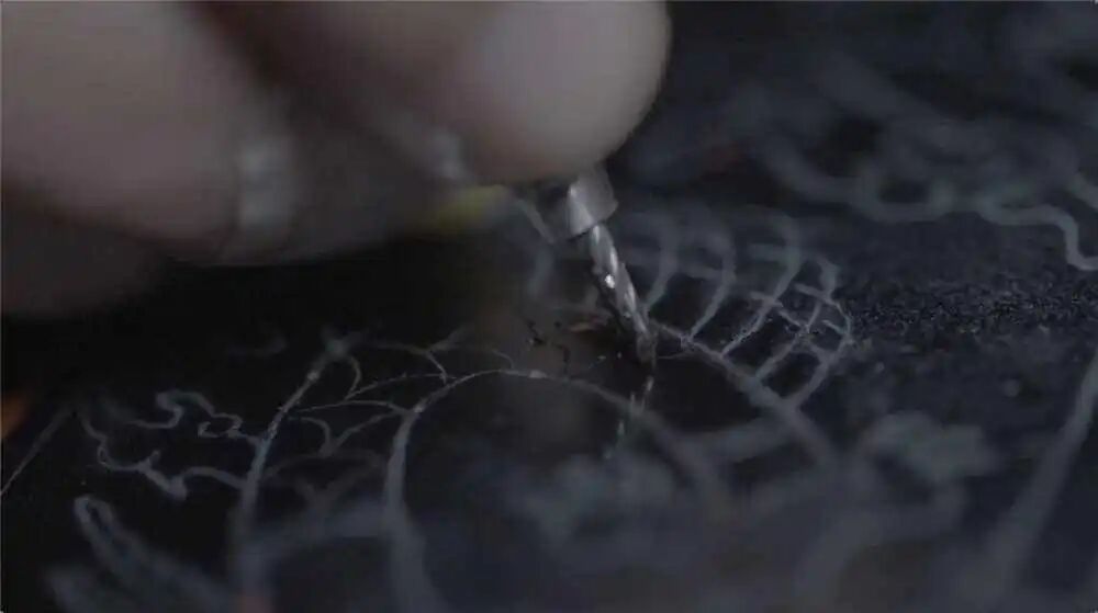 该工艺讲究行刀角度与走向,点、线、面完美结合。将金属熠熠闪烁的光泽和漆器艺术的高雅、素洁、清丽相结合,将漆艺的艺术魅力发挥到极致。