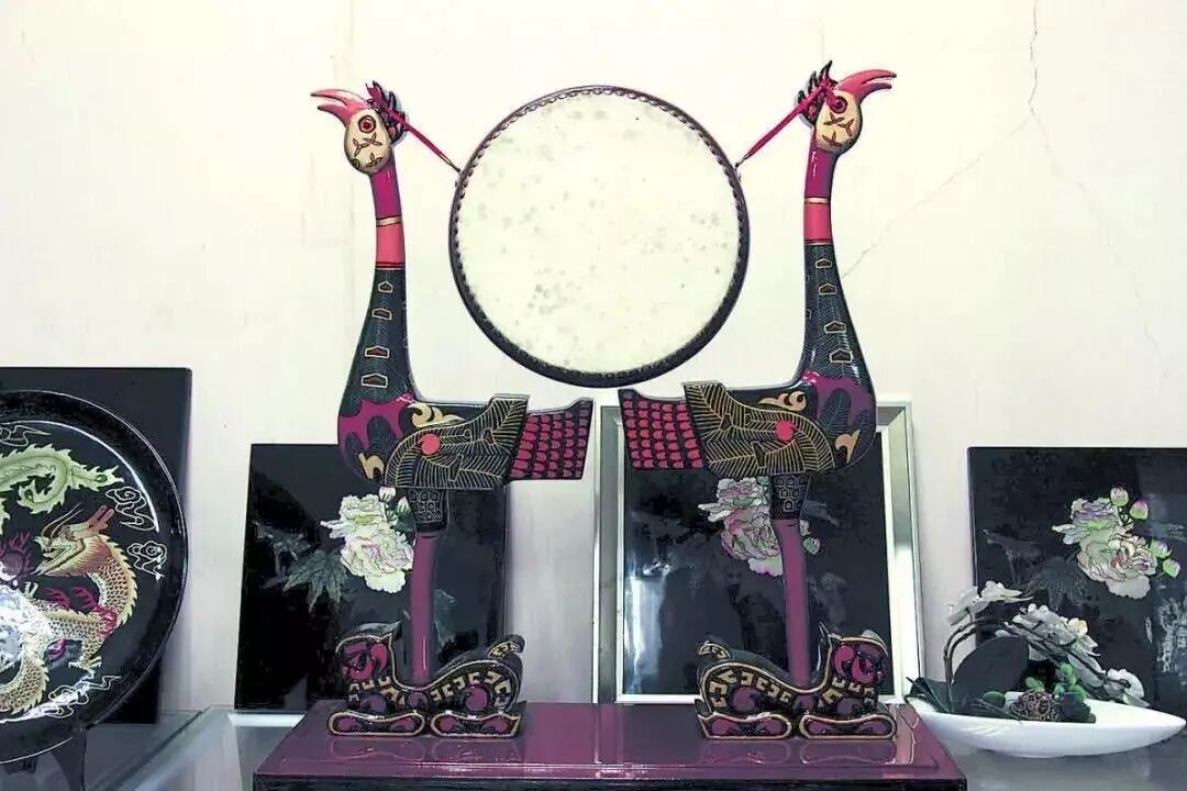 虎座凤架鼓 仿古漆器