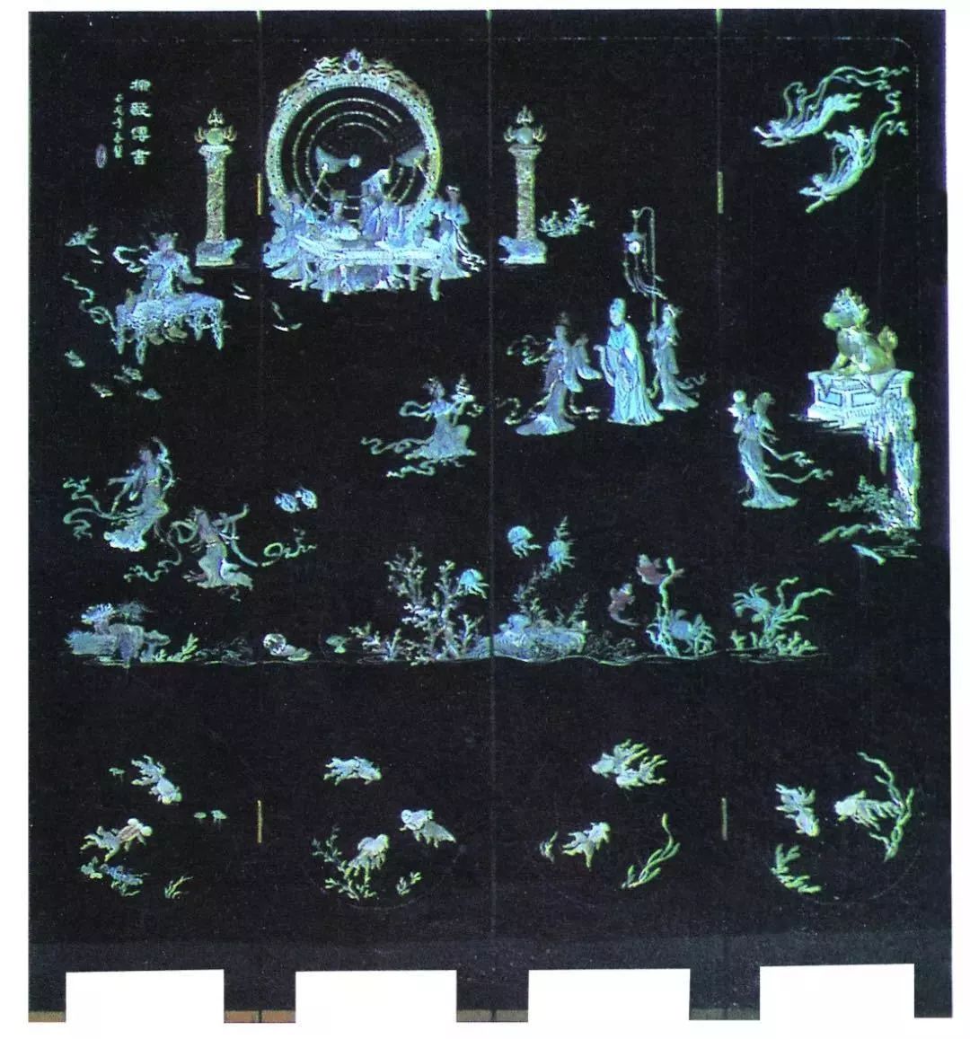 越剧《柳毅传书》中最著名的场景“龙宫饯别”是张宇的经典作品之一。为了把水中的虾兵蟹将画得栩栩如生,他一边观察活虾一边创作,历时3天才完成第一步。而在后续的制作过程中,他更是首次将平磨螺钿工艺与点螺工艺结合起来,终于制作出“水晶幻境”。这幅作品一完工,就获得了全国首届工艺百花奖。