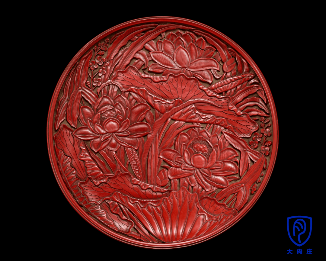 十四世纪 剔红荷塘图盘“杨茂造”款