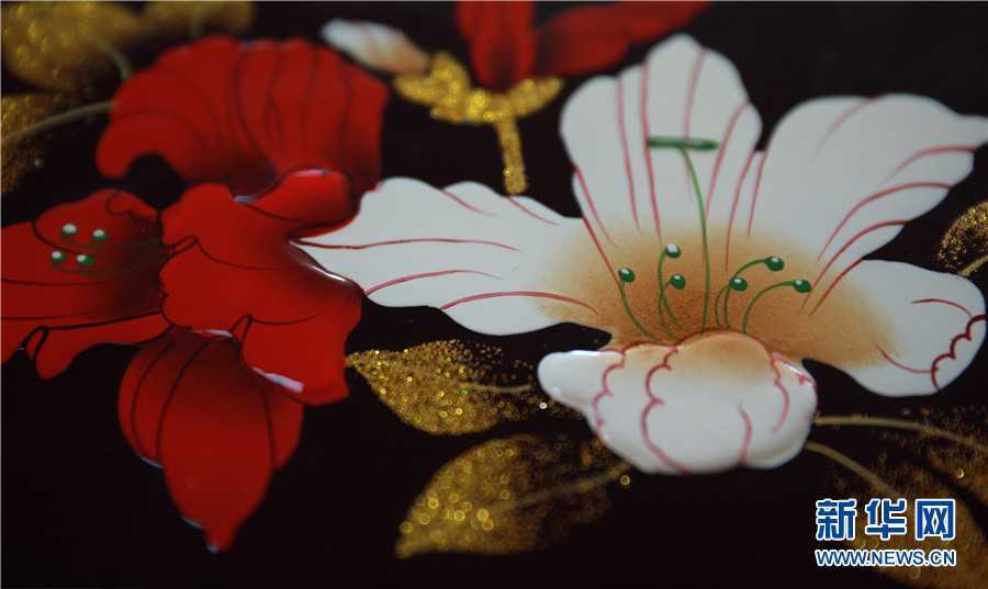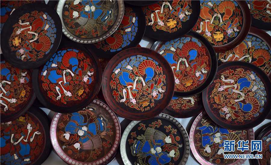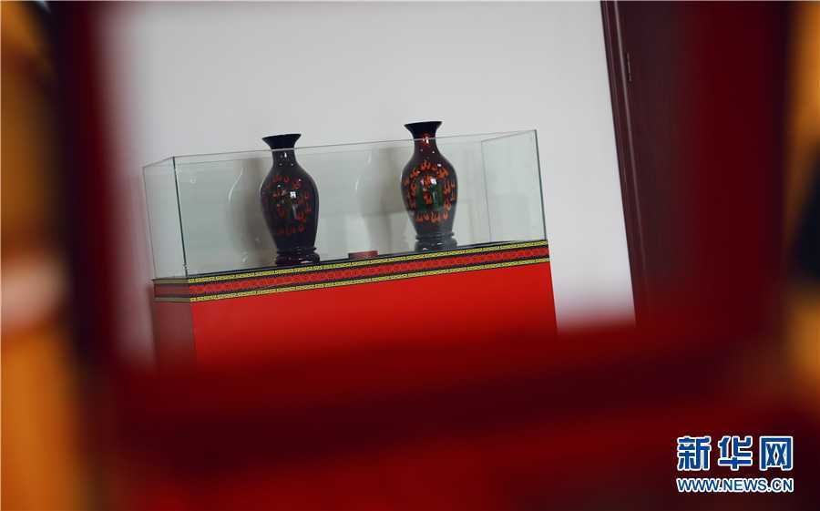 大方县高光彝风漆器工艺制品厂展示的漆器工艺品(3月31日摄)。新华网 卢志佳 摄