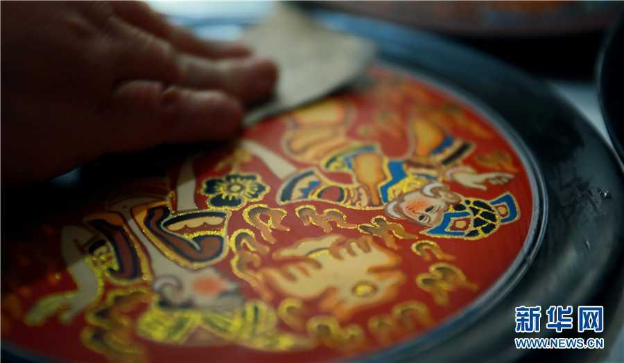 经过漆地、装饰后,未打磨抛光的盘子(3月31日摄)。新华网 卢志佳 摄