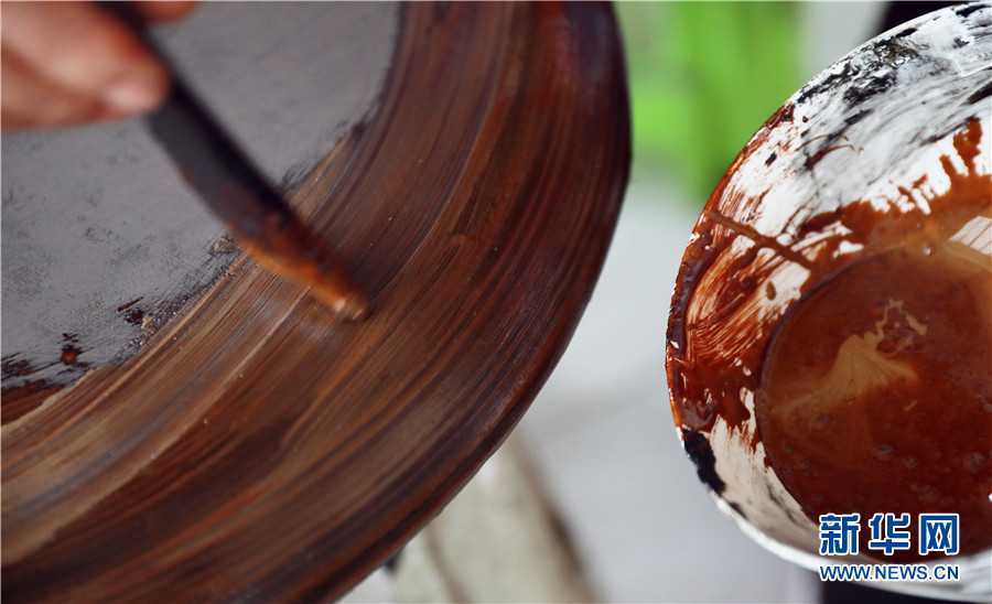 大方漆器多采用当地特产的生漆进行上漆(3月31日摄)。新华网 卢志佳 摄