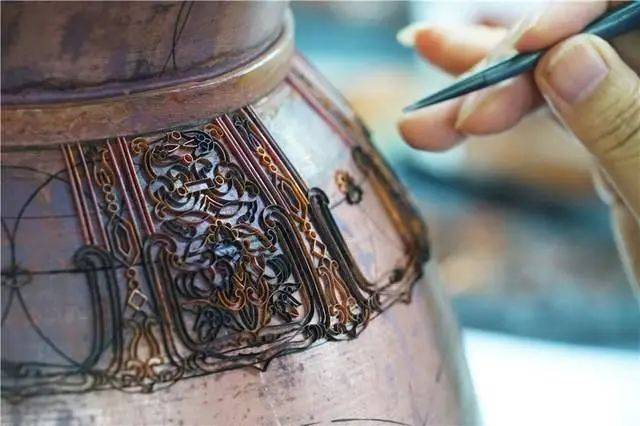 北京景泰蓝技艺又名“铜胎掐丝珐琅”,因成熟于明景泰年间,故名“景泰蓝”。其技艺是用铜作胎,将细铜丝轧扁后以手工制成各种图案,掐、焊、贴在胎体上,再施珐琅釉料,经过烧制、磨光、镀金等多道工序最后制作出成品。