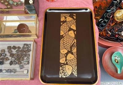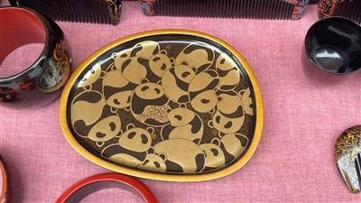 叁合漆艺社主理人李勇将成都漆器带到了市集。据李勇介绍,成都的漆器有着悠久的历史,它代表性的工艺是金银平脱,发展到现在形成了“三雕一刻”的工艺——雕银丝光、雕花填彩、雕漆隐花和拉线针刻四种装饰技法,这也是成都漆艺区别于其他地区漆艺的重要特色。