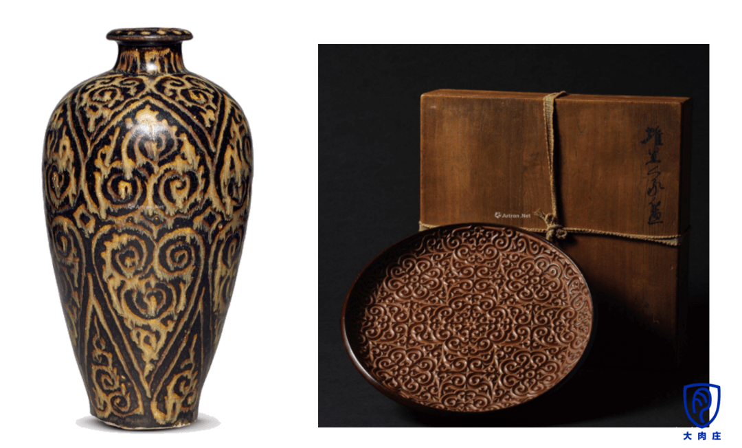 左图 南宋/元 吉州窑仿剔犀如意云纹梅瓶 | 香港佳士得2015年秋拍