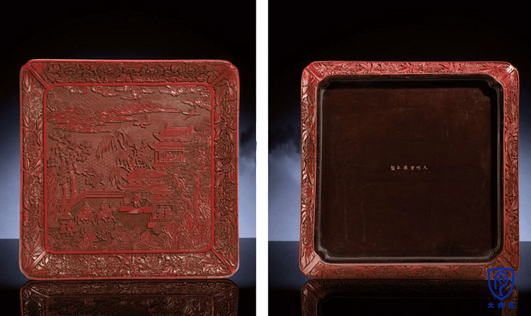 明洪武 剔红游归图倭角方盘 | 香港佳士得2009年秋拍