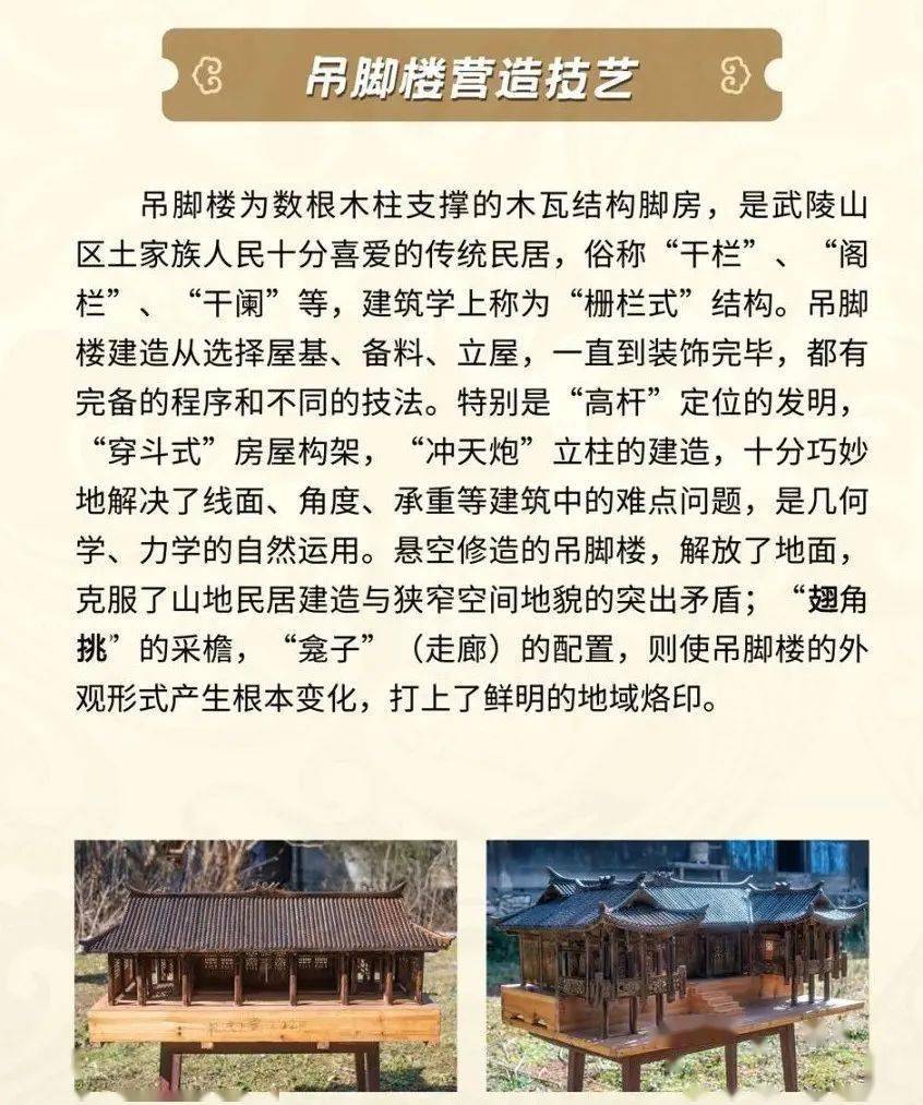 吊脚楼为数根木柱支撑的木瓦结构脚房,是武陵山区土家族人民十分喜爱的传统民居,俗称“干栏”、“阁栏”、“干阑”等,建筑学上称为“栅栏式”结构。咸丰土家族民居吊脚楼最早出现在明末清初,清末民初开始大量涌现。