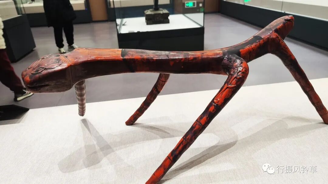 荆博漆精品展中,就有漆案、编磬、镇墓兽、虎座鸟架鼓等各种珍品,涉含的种类有从漆杯、漆碗、漆豆等生活用品,到漆鼓、漆瑟等乐舞器,还有丧葬、车马器、兵器、根雕工艺品等。