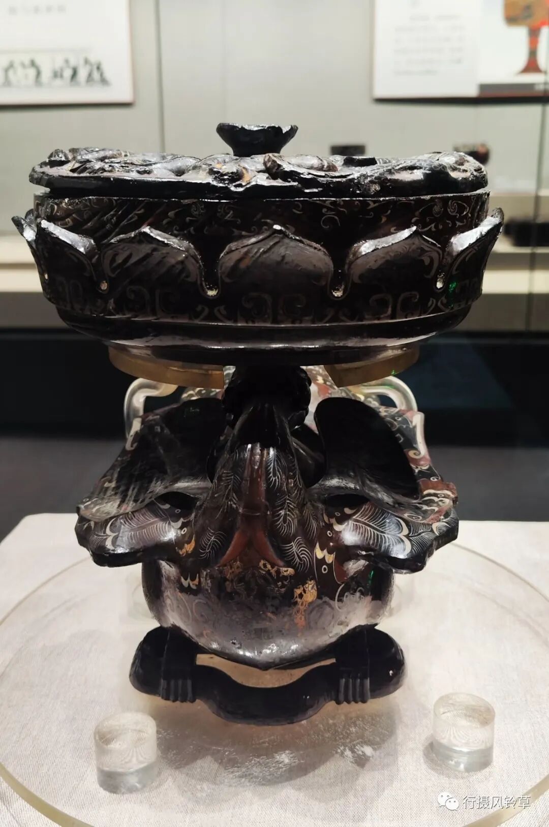 就拿生活用的漆器来说,装水的壶,盛酒的卮,喝酒的杯,吃饭的勺,梳头的梳,睡觉的枕,办公的案几……只有他想不到的,没有他带不来。
