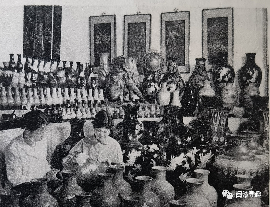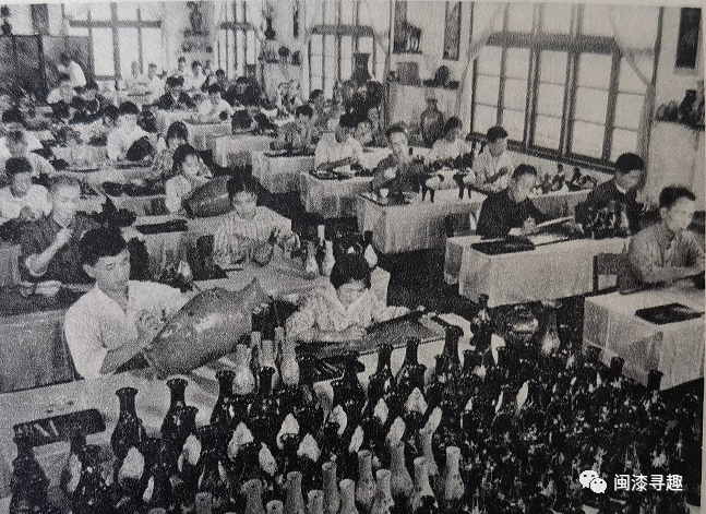 最先映入眼帘的是两张展现福州漆器生产场景的照片,分别配以文字说明:“福州脱胎漆器厂的一个车间”和“福州脱胎漆器厂的工人,正在检验各种制作好的脱胎漆器”。从照片中可以看出,漆瓶仍然是当时的主打产品。由于福州市第二脱胎漆器厂在1970年6月被迫强行关闭,这个工厂无疑是福州市第一脱胎漆器厂。1972年,二脱厂166名老职工联名写信上访,华国锋同志知道后作出指示:“福建脱胎漆器要恢复生产,恢复越快越好”,但直到1974年初才正式恢复建厂。