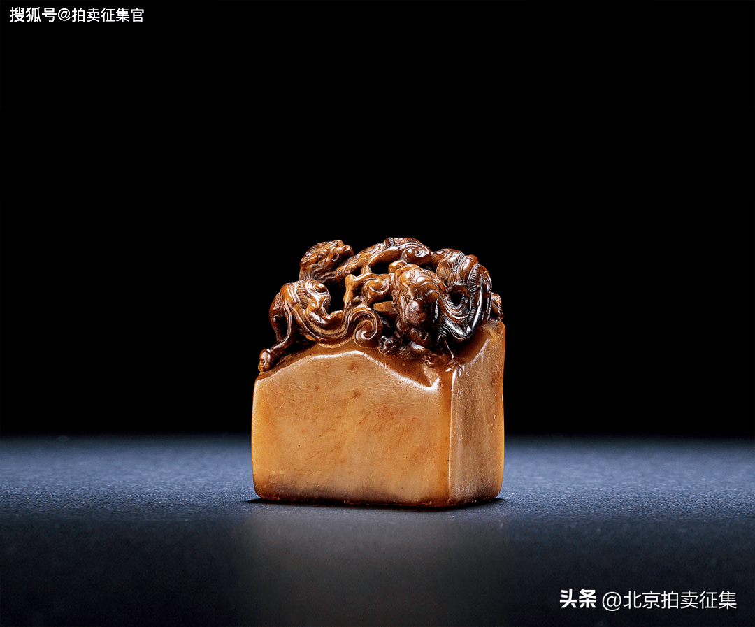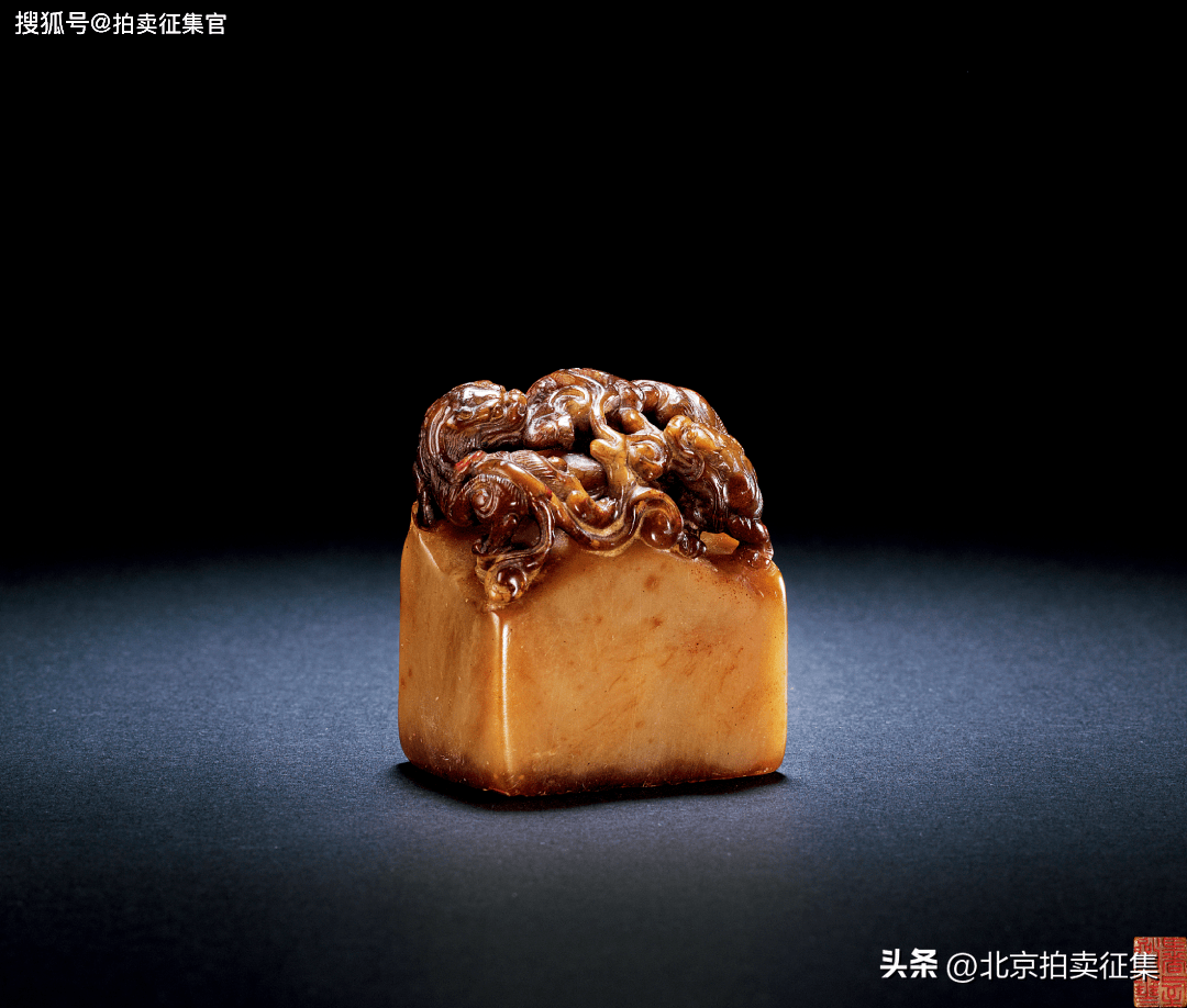 说明:本章石质细如玉,细洁腻凝,如脂似膏,包浆沉稳内敛,古意盎然。钮雕瑞螭造型古朴典雅,螭龙口衔灵芝,作相拥嬉戏状,体态灵动舒展,面部神态活泼,雕刻传神,底刻有「澡雪书屋」四字阴文篆体字,为难得的书房雅号。澡雪有高洁之义,取自《庄子.知北游》:「汝齐戒,疏瀹而心,澡雪而精神。」金石篆刻家徐坚晚年号澡雪老人,根据篆刻风格及印文内容可知为其所刻。