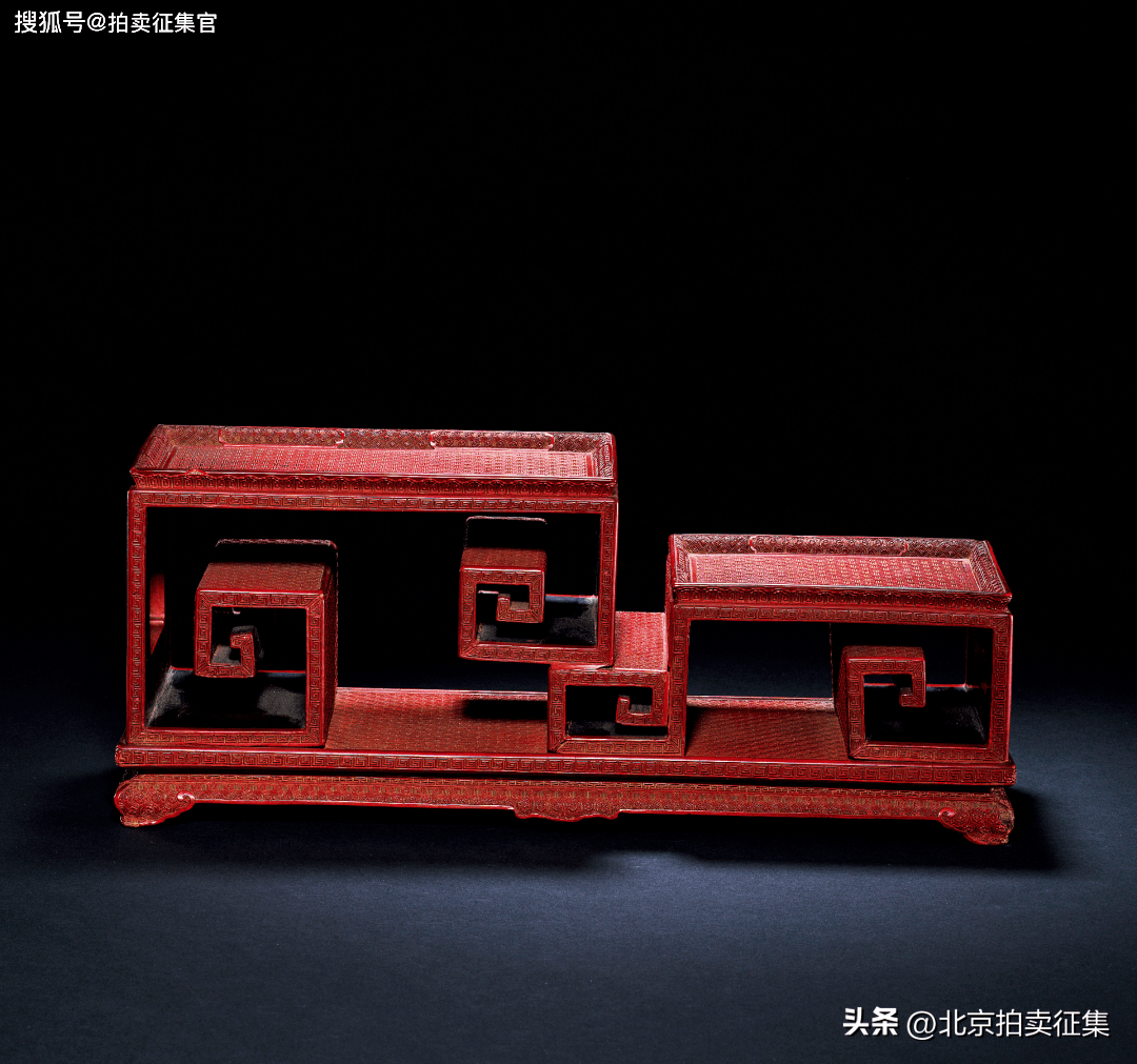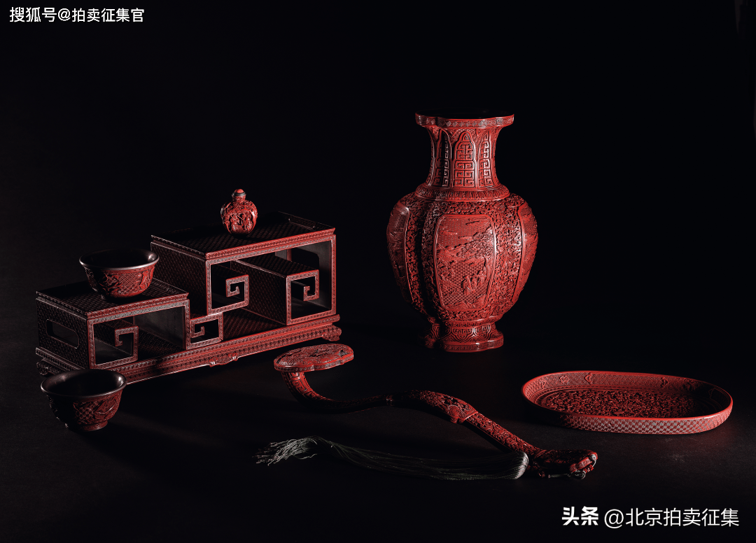本品髹漆肥厚,漆色纯正柔和,雕刻娴熟流畅,体现出十分典型的乾隆朝工艺风格,且保存状态良好,十分难得。