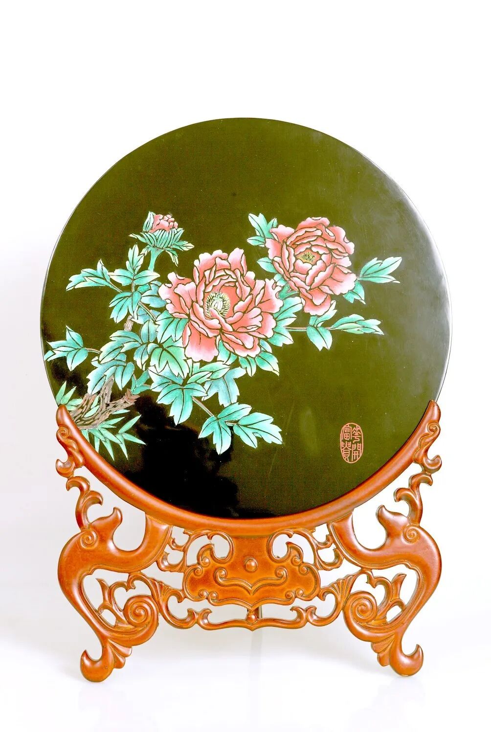 刻填彩漆画《花开富贵》。杨细容 作