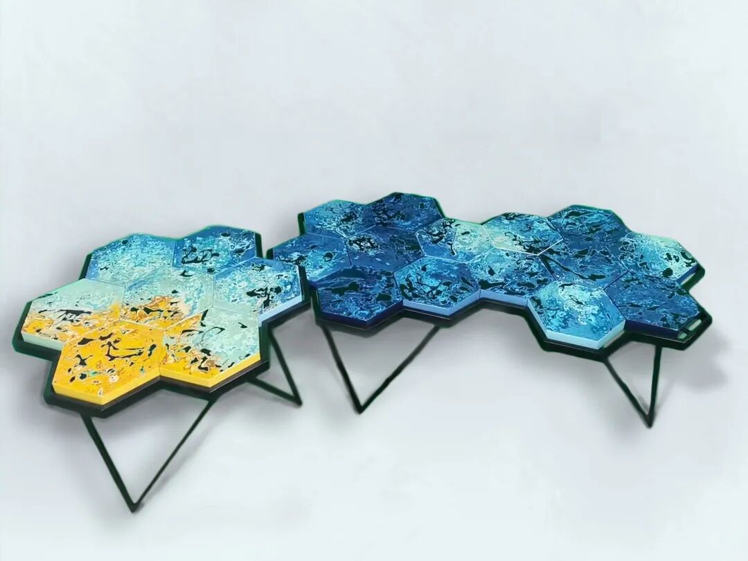 本作品的创作,主要是围绕着爱情元素,运用欧式婚礼的一句老话something old,something new,something borrowed,something blue.中的一些蓝色为主进行创作,运用大漆的工艺进行制作,将蓝色这一抽象的概念事物代替为具体,用大海表达其中美好,忠诚的意象。