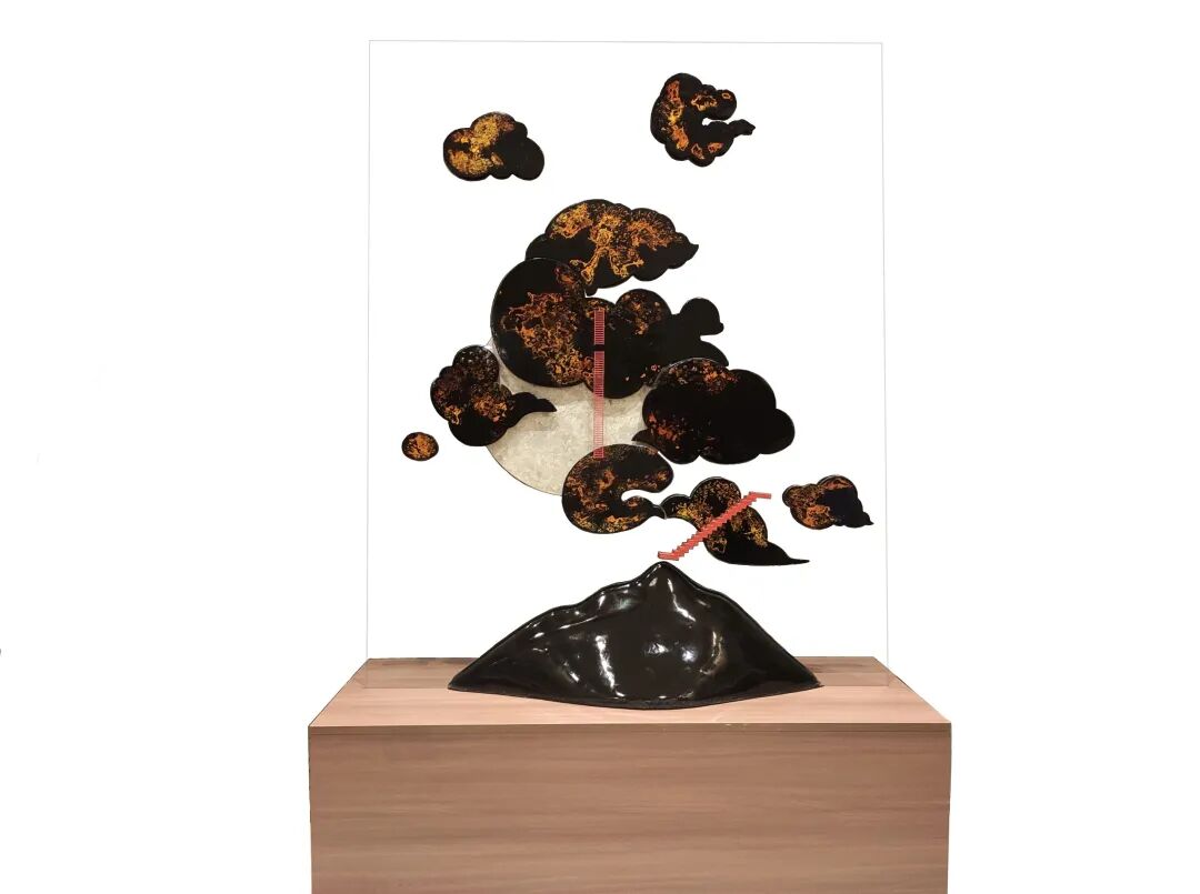 作品的灵感来源于诗词中的经典之作——王安石的《登飞来峰》。“飞来山上千寻塔,闻说鸡鸣见日升,不畏浮云遮望眼,自缘身在最高层。”我根据诗句进行创作,用漆来呈现作品,通过装置艺术形式构建观众与创作者之间的联系,让观众对自然和生活之美产生一些敏锐的感悟。