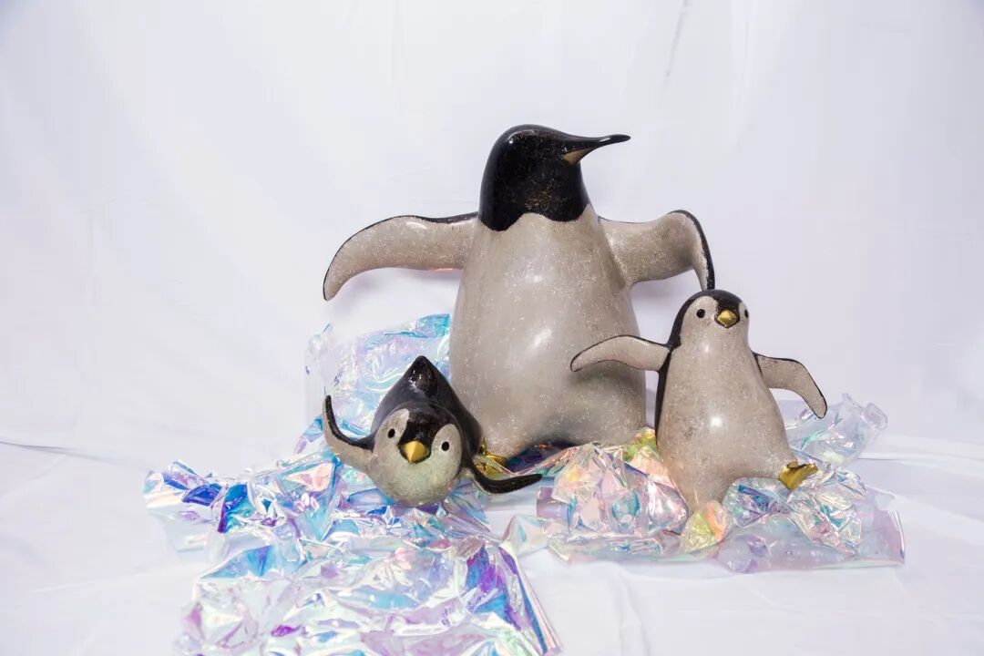本作品以企鹅为表现主体,对企鹅的形象动作做了拟人化的设计,与亚克力铺设的场景相配合。讲述“企鹅一家”在迁徙途中的故事,在满是塑料的冰面上,企鹅一家举步维艰,他们能否顺利迁徙?借鉴喜剧大师卓别林,通过此方式揭露塑料污染的严重性,呼吁大家要爱护环境,不要随意丢弃塑料垃圾。