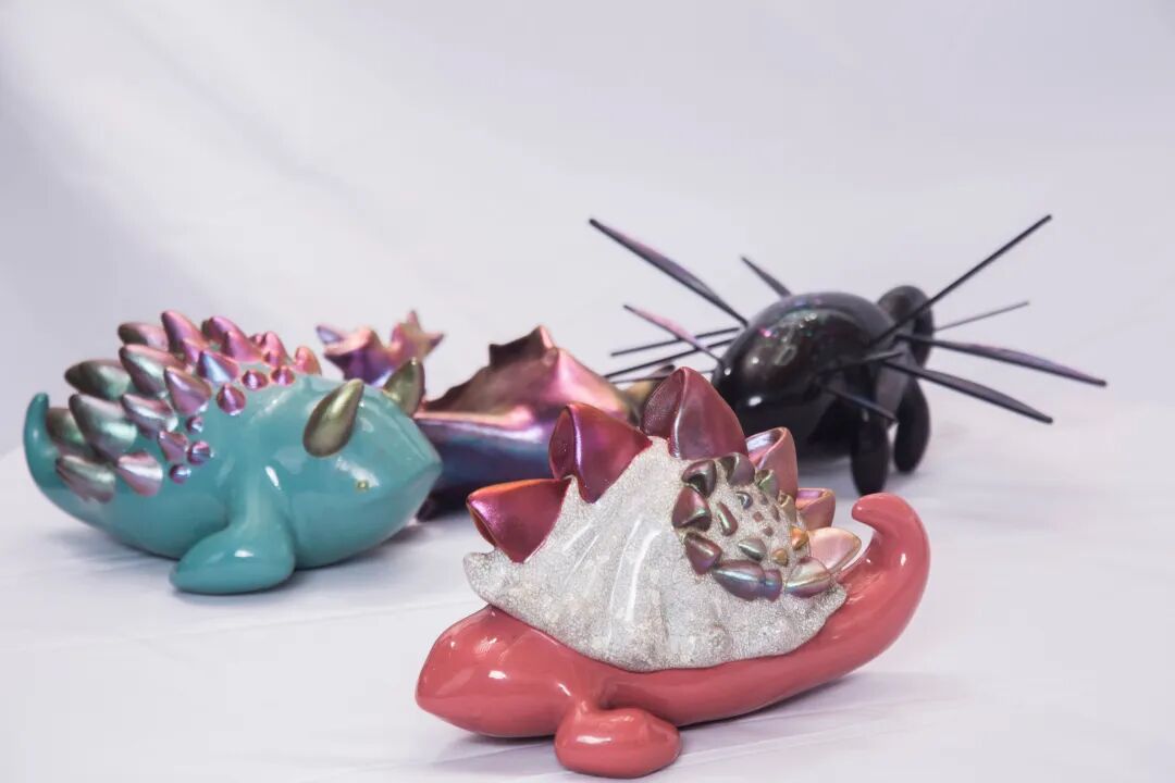 作品选用两栖生物美西螈造型,相对于冰冷的器具造型,生物的造型更易拉近距离,在整体造型上需要趋向可爱的方向,在各种工业条件加持下制作出来的艺术品,不仅更快的制作出来而且可供选择的款式也更多,所以需要能够有令人一眼相中的外观才能吸引眼球,可爱的外观就是其中之一,除开可爱性还具有一定趣味性。