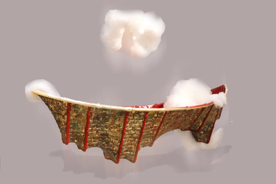 船的寓意象征一帆风顺船要迎风起航,无所畏惧坚定方向理想在远方、永不停歇。在创作中取乘风破浪之意,探究船的形体与浪的造型之间的关系。反复思考竹编、大漆、雕塑之间的结合联系,多方面考虑各个材质的优势与限制,以及竹编的肌理和大漆艺术语言的结合思考,漆艺的装饰手法变得丰富多彩。