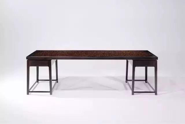 桌形雅致,桌腿纤细,采用高科技碳纤维材料结构,表面精细覆以棕色菠萝漆。科技与传统形制的结合使其坚实轻盈,优雅地呈现了形式创新并承接延续了传统与现代,往昔与未来。