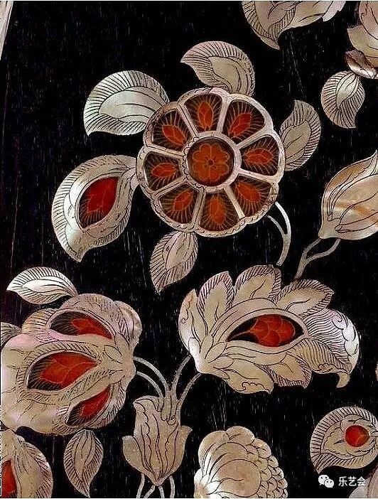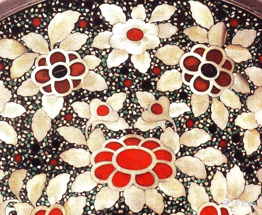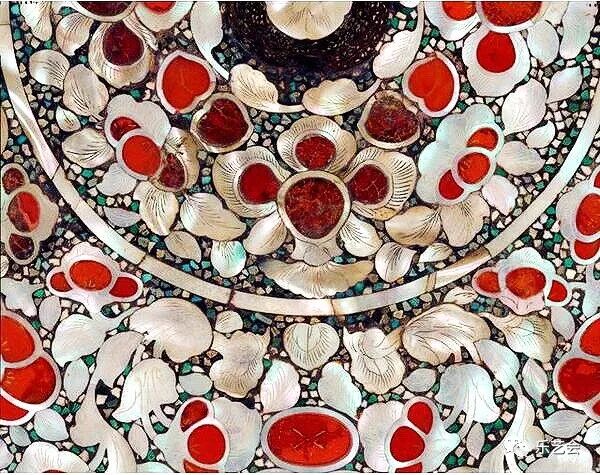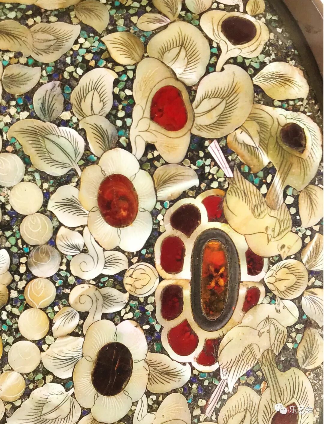 圆形宝相花鸟纹螺钿镜局部