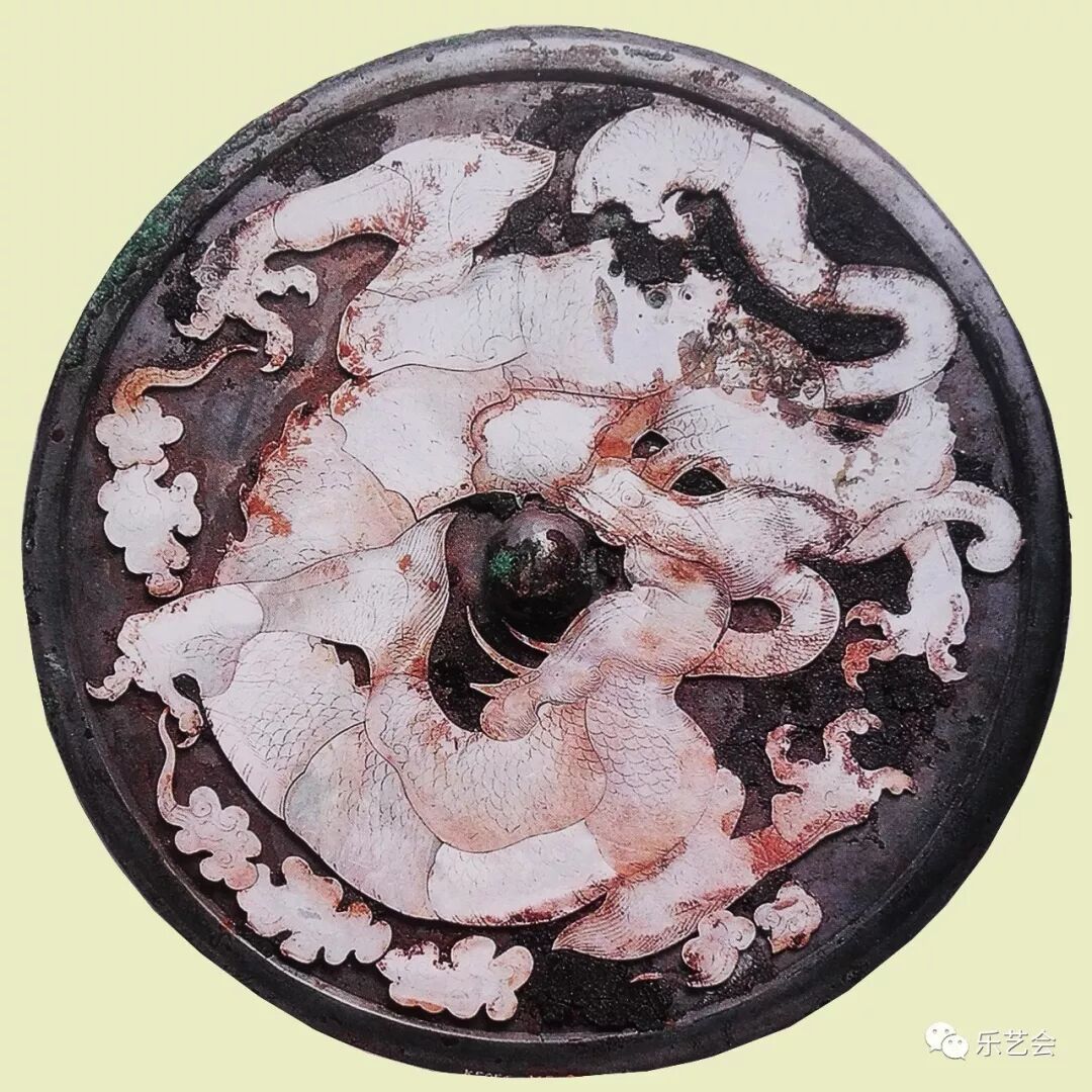 3.平螺钿背盘龙镜,径22厘米,约960克