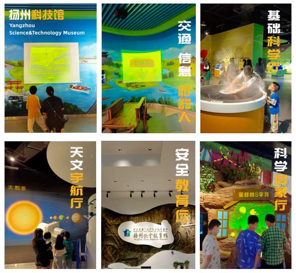 扬州科技馆由南京大学建筑规划设计研究院规划设计,属于综合性自然科学技术博物馆,集知识性、互动性、体验性为一体,设有科学启蒙展厅、地球家园展厅、机器人展厅、工艺技术展厅、交通信息展厅、基础科学展厅、天文宇航展厅、能源材料展厅、安全教育展厅,是全市中小学生的“第二课堂”。