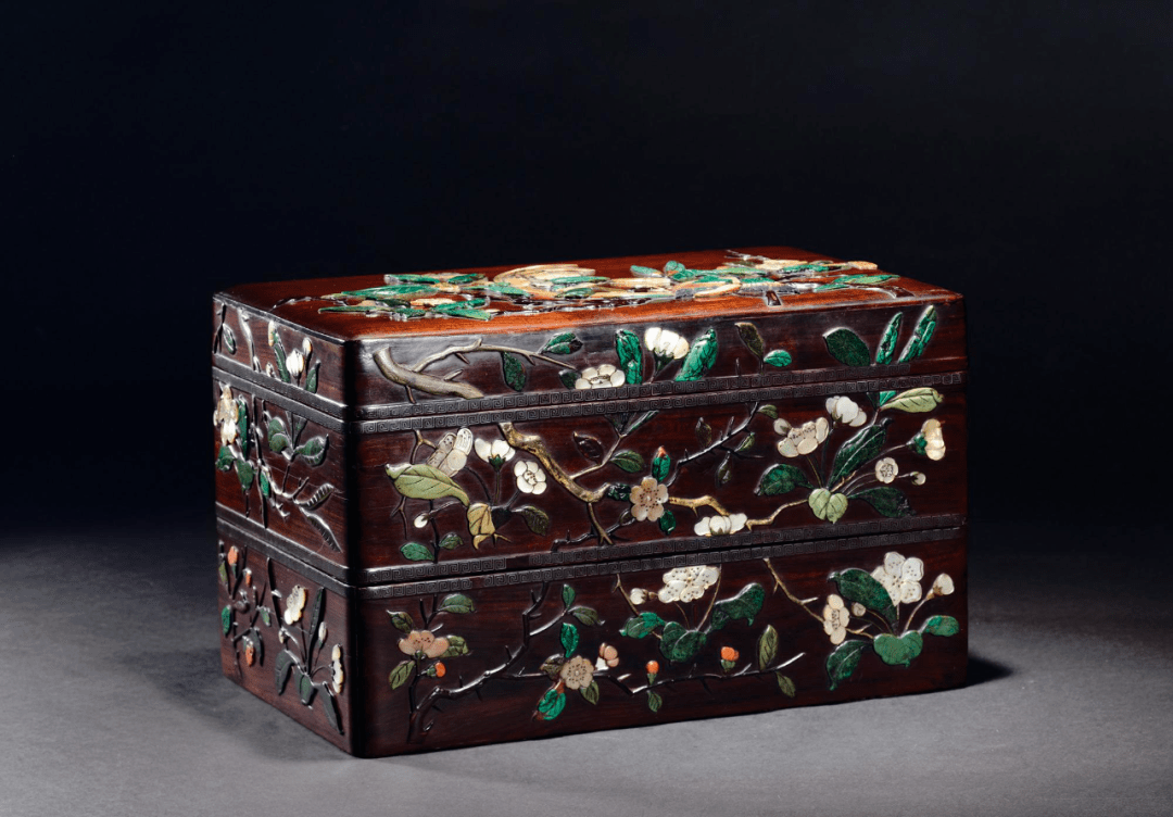 清乾隆 御制紫檀百宝嵌绶带鹊梅海棠纹套盒