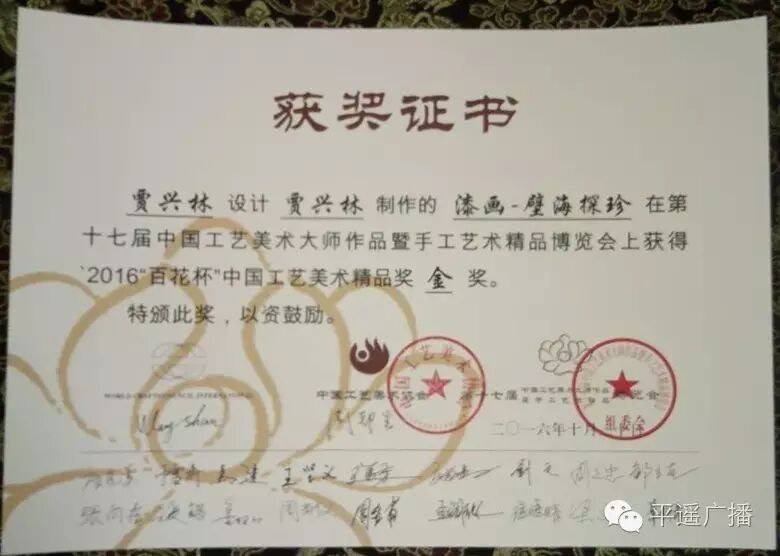 平遥推光漆器艺术作品“壁海探珍”的获奖,凸显出贾兴林在平遥推光漆器行业的艺术造诣和精益求精的“工匠精神”。