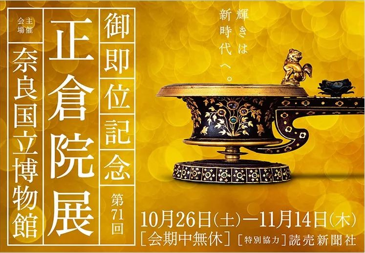 几乎是同期,一年一度的正仓院奈良特别展“第71回正仓院展”(10.26-11.14)也将如期在奈良国立博物馆开幕,为期20天,期间无闭馆日(且:10月26日、27日,11月1日、2日、3日、4日、8日、9日、10日开放时间将延续至晚上8点)。其中,有4件藏品为初次出陈,“明星”展品“金银平文琴”将亮相。