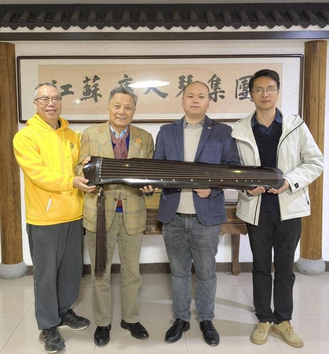 江苏唐人琴集团创始人王玉鹏先生(右2)向中国社会艺术协会赠送古琴礼品