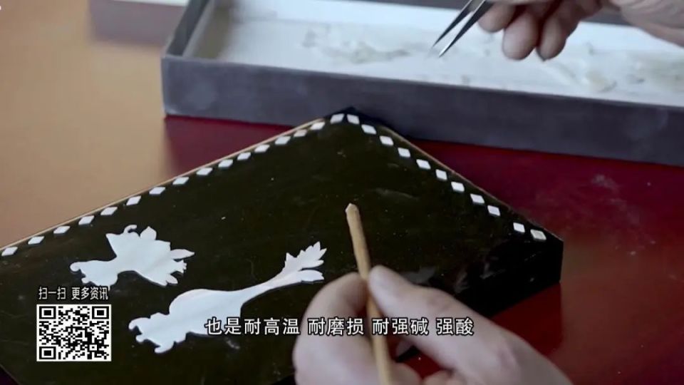 我们使用的漆是纯天然是绿色环保大漆,用大漆髹饰过的器具耐高温耐磨损、耐强碱强酸、防腐防潮防虫蛀,是要经过木工制胎表布刮灰、大漆髹漆、手掌推光、化工彩绘、装饰镶嵌等66道工序才能制作完成。