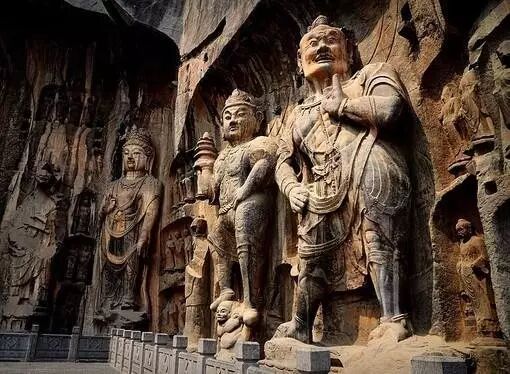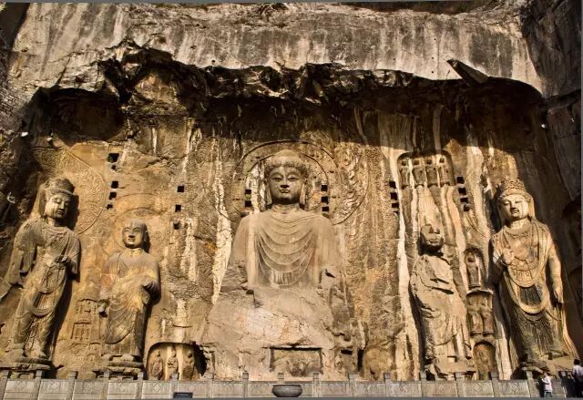 龙门石窟始开凿于北魏孝文帝迁都洛阳(公元493年)前后,后来,历经东西魏、北齐、北周,到隋唐至宋等朝代又连续大规模营造达400余年之久。密布于伊水东西两山的峭壁上,南北长达1公里,共有97000余尊佛像,最大的佛像高达17.14米,最小的仅有2厘米。